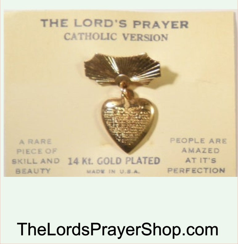 Vintage 1960's The Lord's Prayer Heart Pendant Pin 14kt Gold Plated MADE IN USA